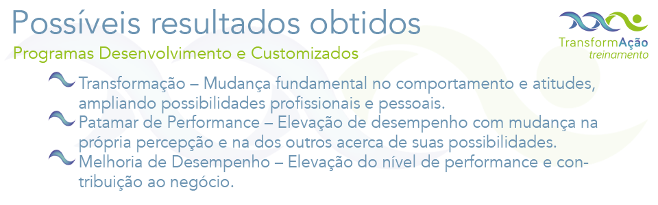 Resultado – Por meio de um plano de ação efetivo que colocará em pratica as lições aprendidas em seu dia a dia, trazendo resultados concretos na mudança do comportamento.
